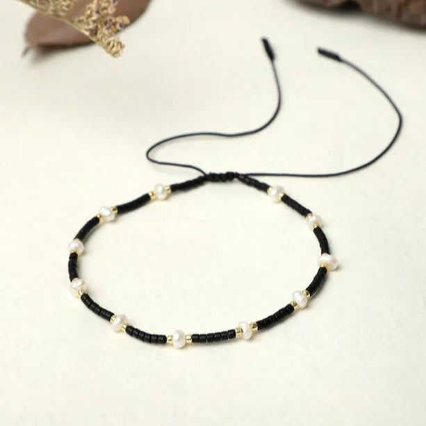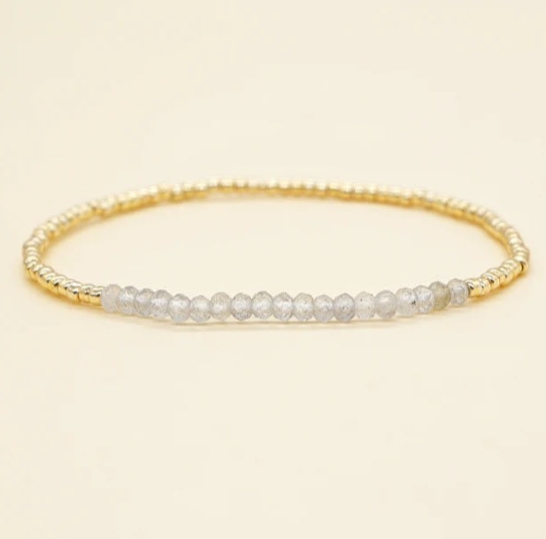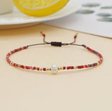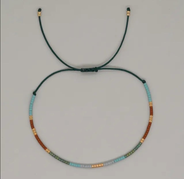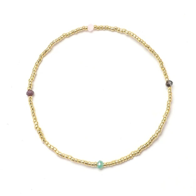 Pulsera hilo con bellas piedras naturales y mostacilla enchapada en oro, estas pulseras son libres de níquel.