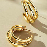 Argollas triples enchapadas en oro destacan por su diseño único y elegante.